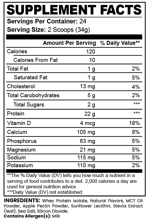 With 22 grams of pure whey protein per serving, this isolate enhances muscle recovery and growth. It also supports digestive health with apple pectin powder and includes MCT oil powder for quick energy and improved metabolism.